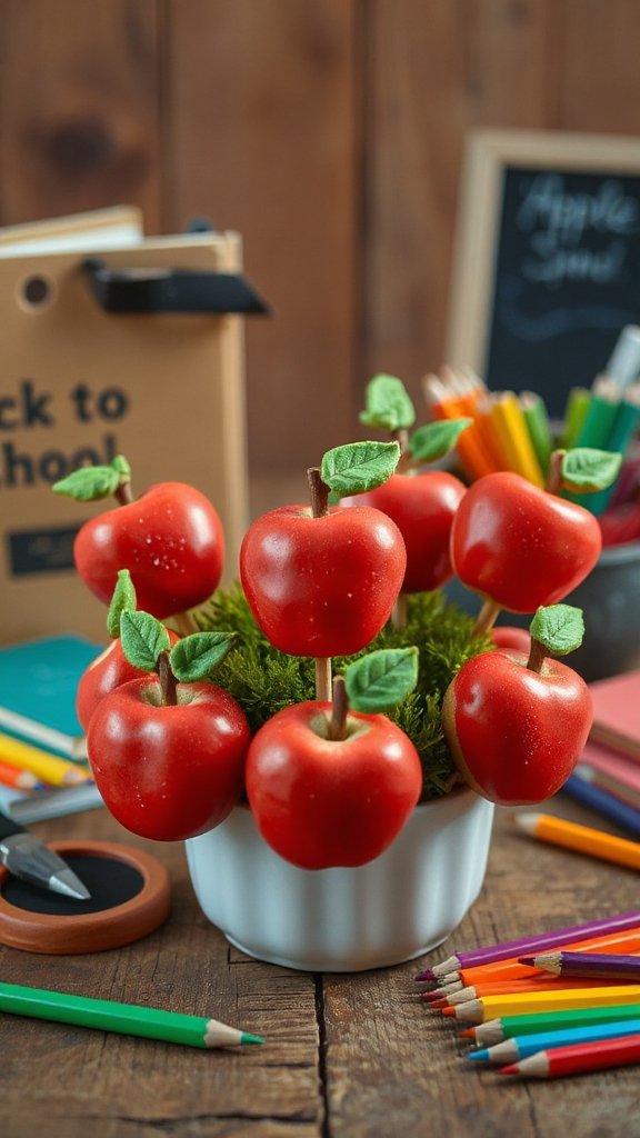 - Shape the dough into items resembling apples, books, and notebooks, and insert lollipop sticks into each.