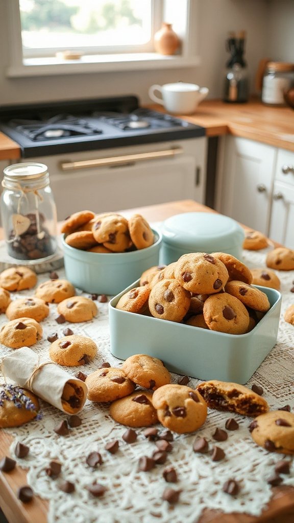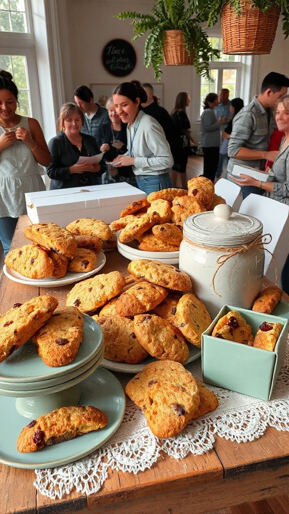 Biscotti are delightful twice-baked Italian cookies that are hard and crunchy, making them perfect for dipping in coffee or tea. These cookies come in various flavors, such as almond, chocolate, or cranberry, and are often enjoyed as a sophisticated treat at gatherings or bake sales. Their sturdy texture allows them to hold up well, making them an ideal candidate for sharing.
