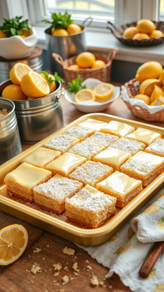 Lemon bars are a zesty and invigorating dessert that perfectly balances sweet and tart flavors, making them a crowd-pleaser at any bake sale. With a buttery shortbread crust and a tangy lemon filling, these bars are not only easy to make but also offer a delightful burst of citrus that brightens up any occasion.