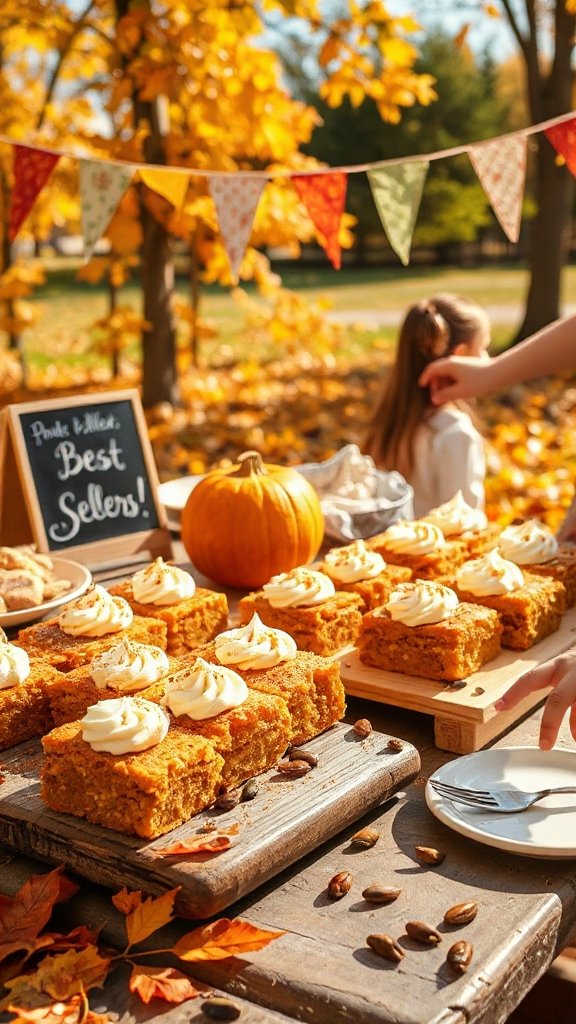 Pumpkin bars are a delicious fall-inspired dessert that combines the warm flavors of pumpkin and spices in a soft, chewy bar, making them a perfect addition to bake sales and gatherings. These treats are often topped with a creamy frosting, enhancing their rich flavor and appealing to a wide range of taste buds.