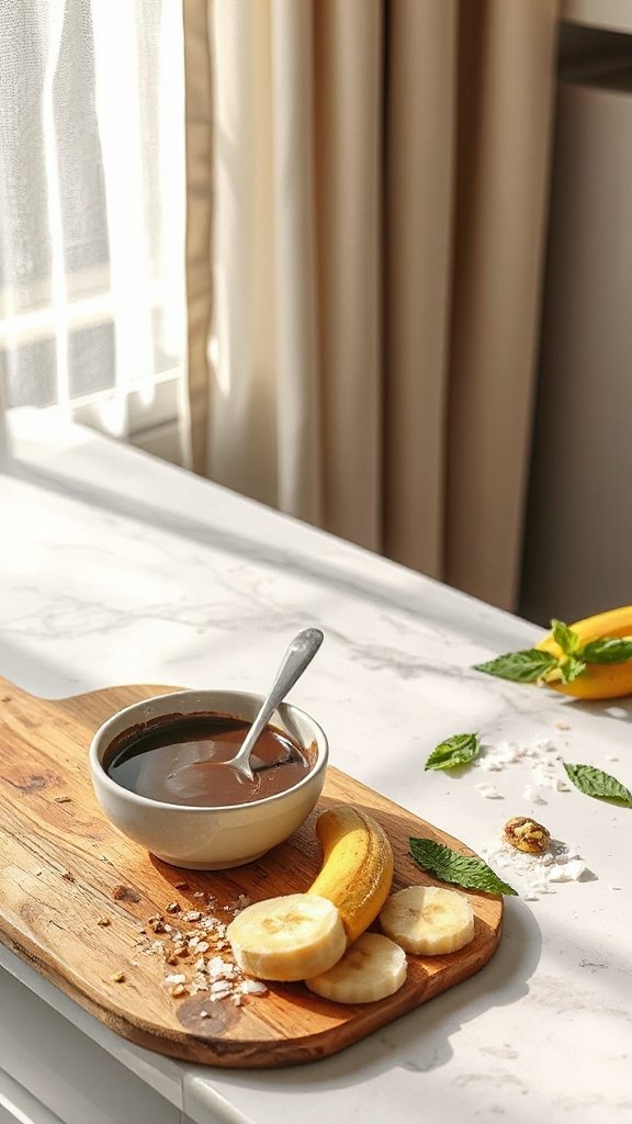- Place the chocolate-dipped bananas on a parchment-lined baking sheet and add any optional toppings as desired.