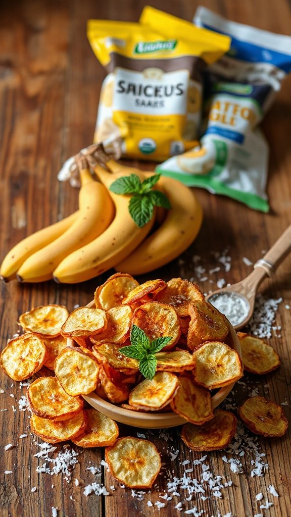 - Remove from the oven and let cool before serving. Enjoy your crunchy Banana Chips with Coconut!
