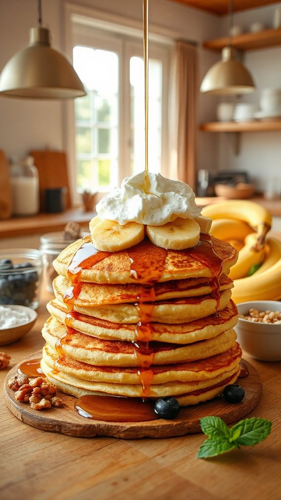 - Serve warm with your favorite toppings such as syrup, nuts, or additional banana slices. Enjoy your delicious Banana Pancakes!