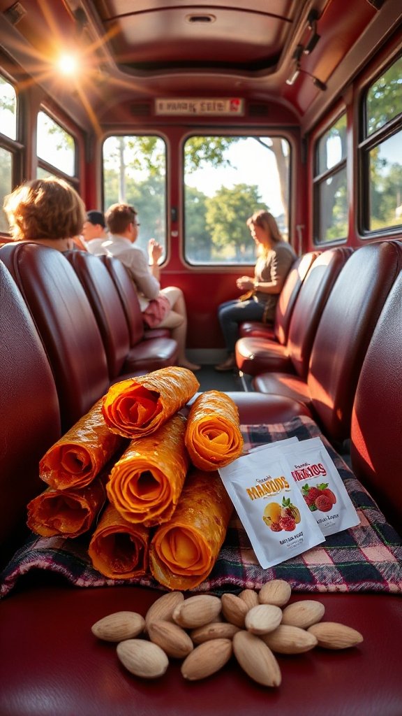Fruit leather is a delicious and chewy snack that’s perfect for bus rides, providing a natural sweetness and a boost of energy from real fruit. This homemade treat is not only easy to make, but it’s also customizable with your favorite fruits. Plus, it’s a healthier alternative to processed sugary snacks, making it an ideal option for keeping hunger at bay while traveling.