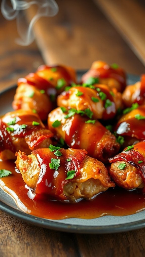 BBQ Bacon-Wrapped Nuggets are a deliciously indulgent treat that takes the classic chicken nugget to another level. These nuggets are wrapped in crispy bacon and slathered in BBQ sauce, making them the perfect combination of savory, smoky, and sweet flavors. Ideal for parties, game day, or just a cozy night in, these nuggets are sure to satisfy any craving.