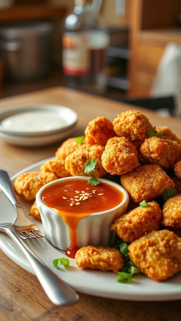 Spicy Honey Garlic Nuggets are a mouthwatering twist on the classic chicken nugget, infused with a delightful blend of sweet and spicy flavors. The succulent chicken is perfectly cooked and coated in a irresistible honey garlic sauce that adds depth and excitement to each bite. Ideal for those who enjoy a kick in their meals, these nuggets can be served as a snack, appetizer, or a main dish paired with rice or veggies.