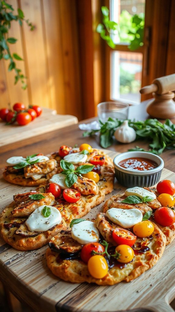 Italian Chicken and Mozzarella Flatbreads are a flavorful dish that combines tender chicken with the rich tastes of Italian herbs and mozzarella cheese, all served on a crispy flatbread base. Perfect for a quick meal or an appetizer, these flatbreads are a crowd-pleaser bursting with savory goodness.