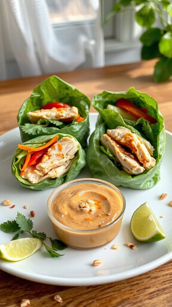 Thai Chicken Rolls With Peanut Sauce are a delicious and fresh dish that features tender chicken wrapped in rice paper along with crisp vegetables and herbs, all complemented by a creamy and flavorful peanut sauce. These rolls are perfect for appetizers, snacks, or a light meal and are sure to impress with their vibrant flavors and textures.