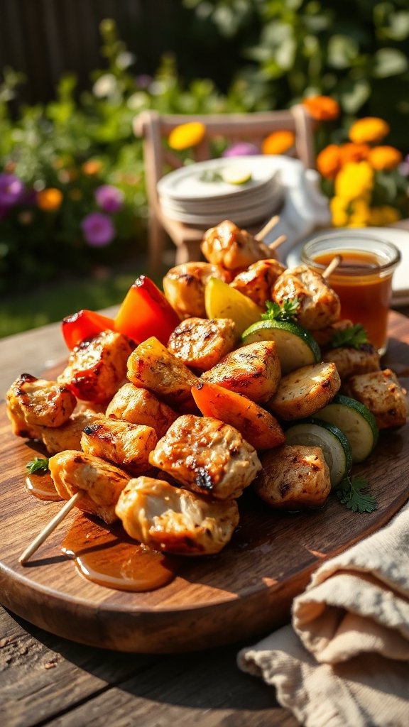 - Serve hot and enjoy your Honey Garlic Chicken and Vegetable Skewers!
