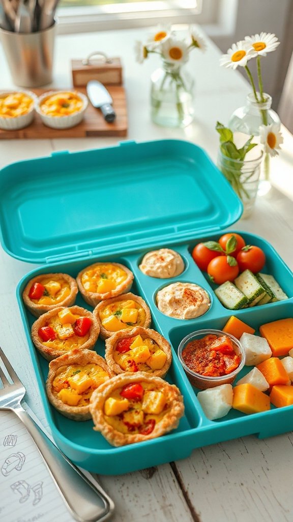 Mini quiches are delightful, bite-sized treats that pack a protein punch, making them a perfect addition to any colorful lunchbox. These savory pastries can be customized with various fillings, featuring vibrant vegetables, meats, or cheeses, making them not only nutritious but also visually appealing. They’re simple to prepare, can be made ahead of time, and are great warm or cold.