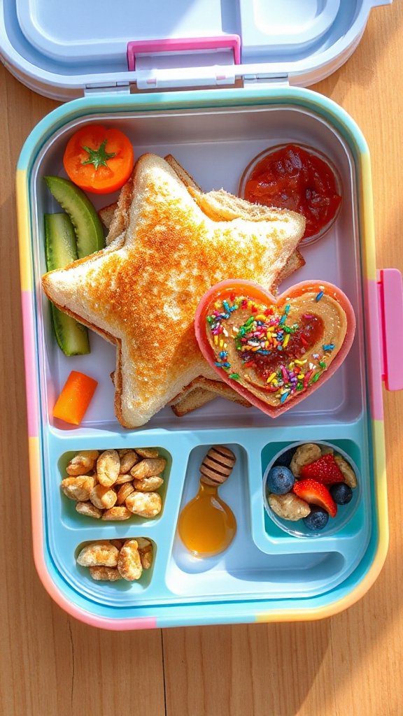 - Arrange the fun-shaped sandwiches in a lunchbox and add any additional snacks or fruits for a colorful, complete meal. Enjoy!