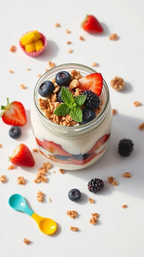 - Add a layer of fresh berries on top of the yogurt.