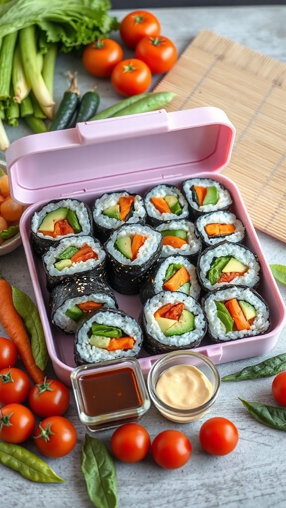 Veggie sushi rolls are a fun and healthy spin on traditional sushi, making them a colorful and nutritious choice for your lunchbox. Packed with vibrant vegetables and rolled in rice, these sushi rolls can be a delightful meal or snack for both kids and adults. They are easy to prepare and customizable according to your taste preferences.