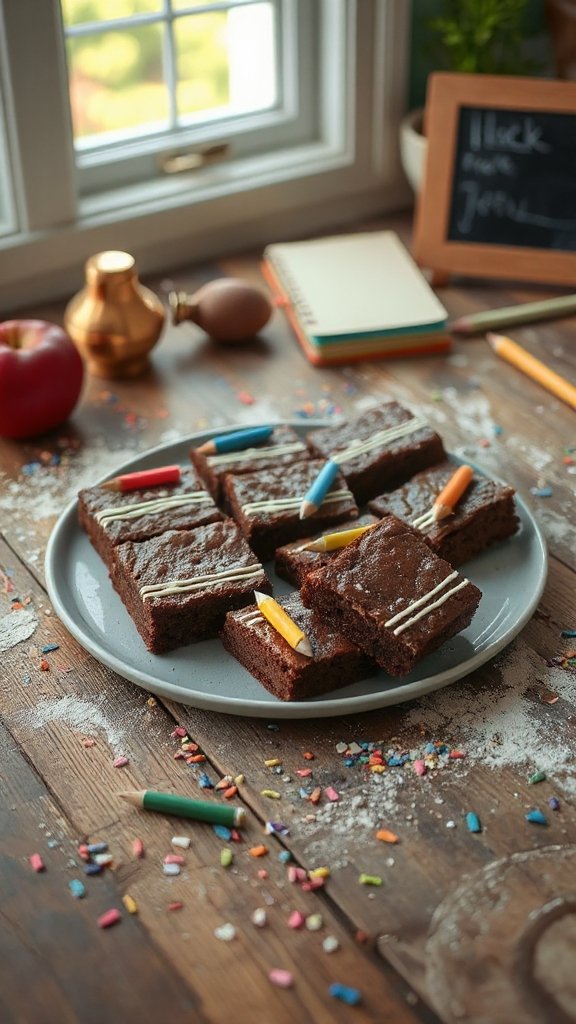 - Top each brownie with colorful candies to mimic the look of pencils peeking out from a pencil case. Enjoy your fun and delicious Pencil Case Brownies!