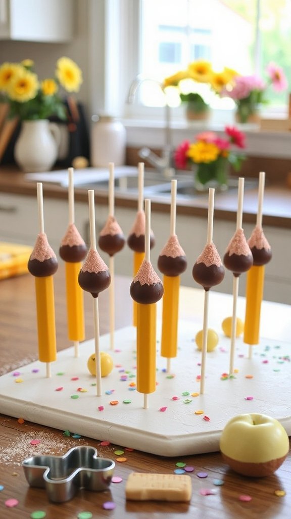 - Use colored candy melts to create pencil details (e.g., the tip and eraser) and decorate with edible markers if desired.