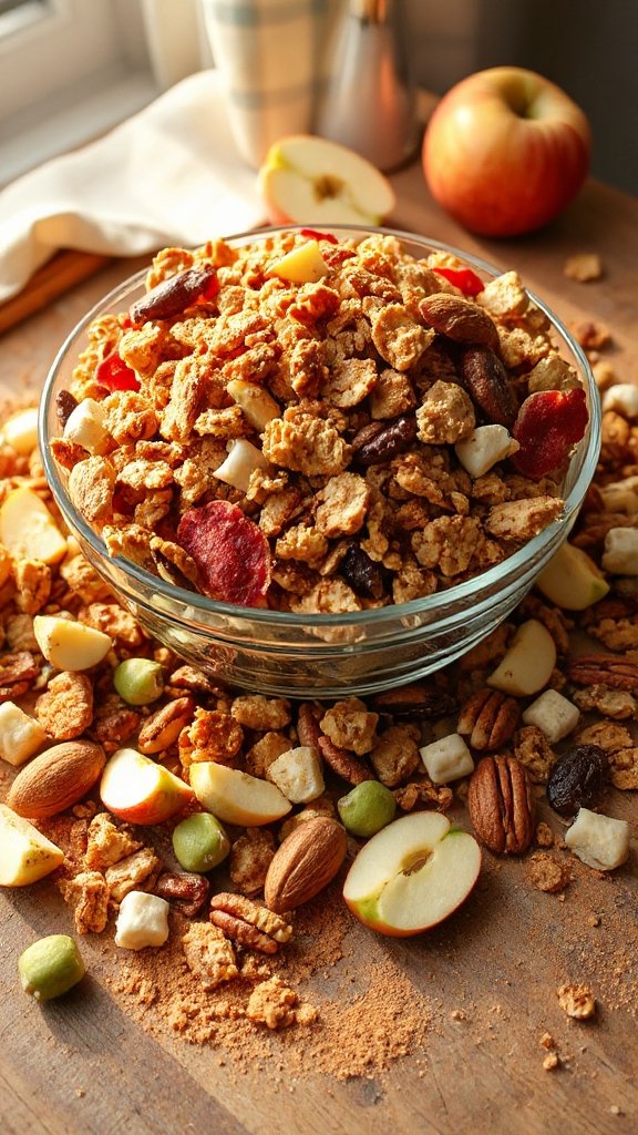 Apple Cinnamon Crunch is a wholesome and nourishing trail mix that brings together the classic flavors of apples, cinnamon, and nuts. This delightful blend is not only satisfying but also offers a great balance of sweetness and crunch, making it a perfect snack for school lunches or an afternoon boost. With a combination of dried apples, nuts, and a sprinkle of cinnamon, this mix is sure to be a hit among kids and adults alike.