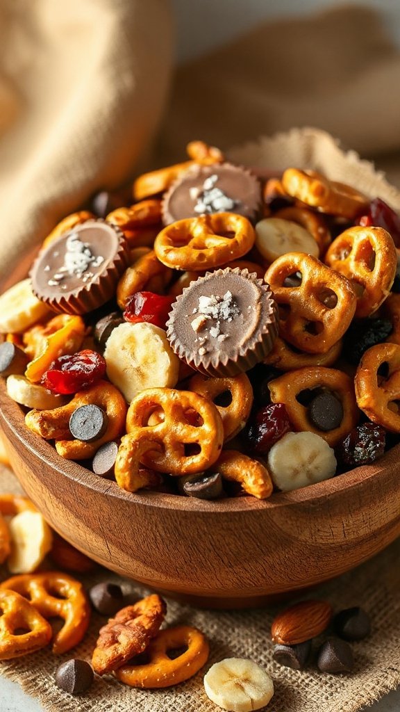 Sweet and Salty Pretzel Mix is a delightful and easy-to-make snack that perfectly combines the crunchy texture of pretzels with the sweetness of chocolate and other sugary treats. This trail mix is ideal for back-to-school snacking, lunch boxes, or on-the-go munching, providing a satisfying balance of sweet and salty flavors that kids and adults alike will love.