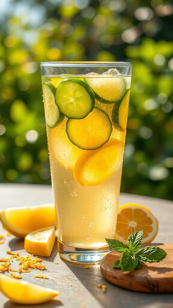 - Serve over ice and garnish with mint leaves if desired. Enjoy your revitalizing cucumber-infused lemonade!