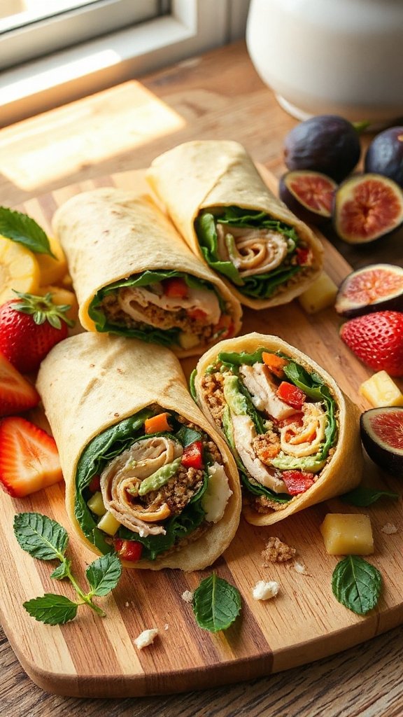 - Slice the wraps in half and serve immediately or pack them up for lunch.