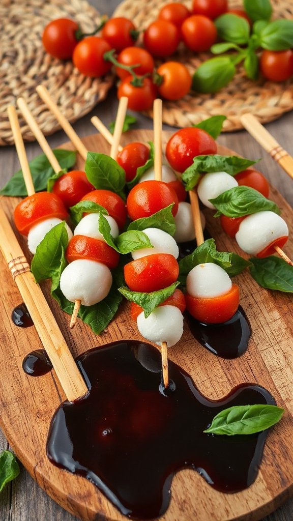 3. Finish by drizzling the balsamic glaze over the skewers before serving. Enjoy!