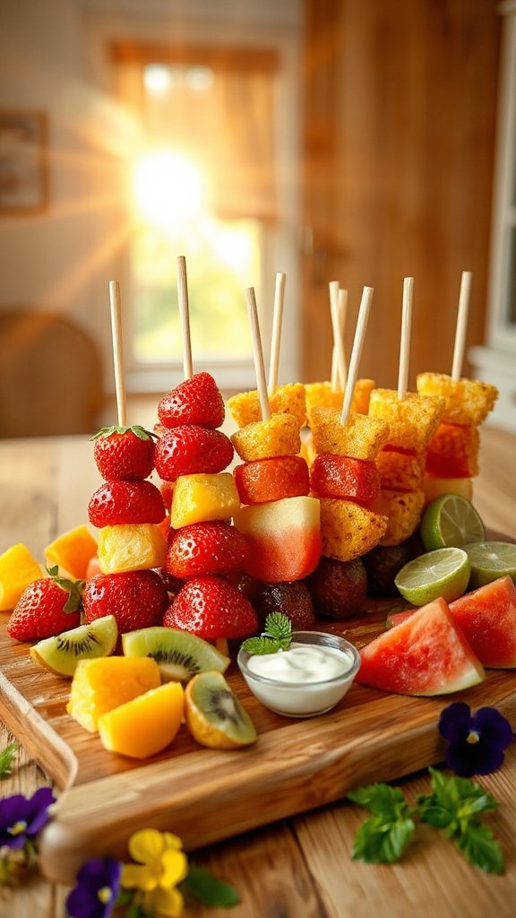 1. Prep the Fruit: Wash and cut all fruits into bite-sized pieces, ensuring easy threading onto skewers.