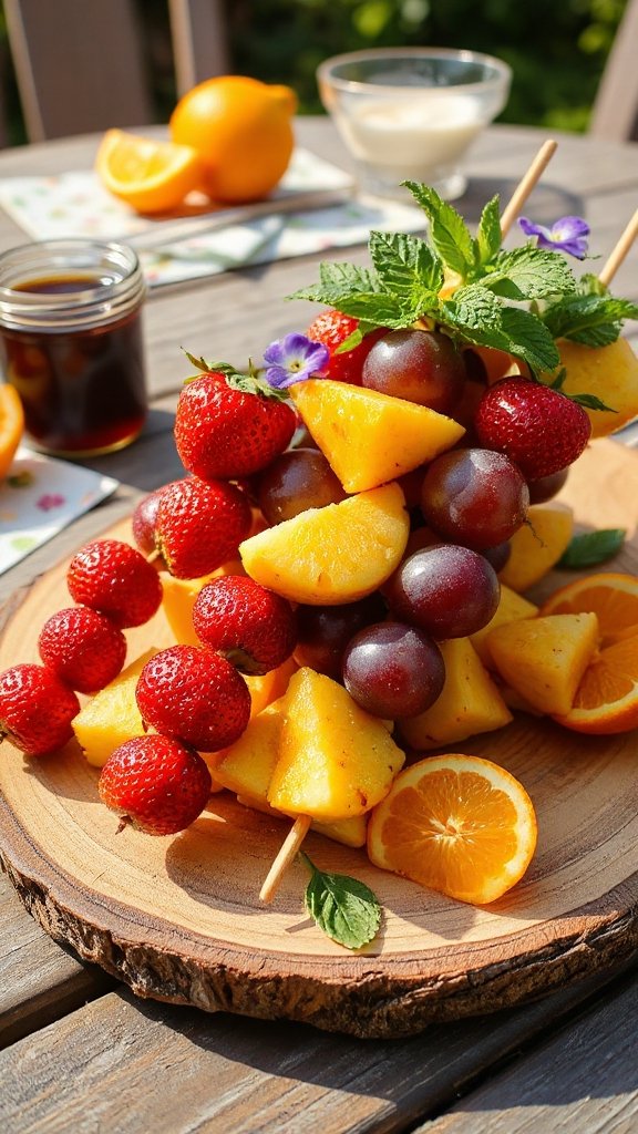 2. Assemble Kabobs: Thread the citrus segments and kiwi slices onto skewers, alternating with fresh mint leaves for added flavor.