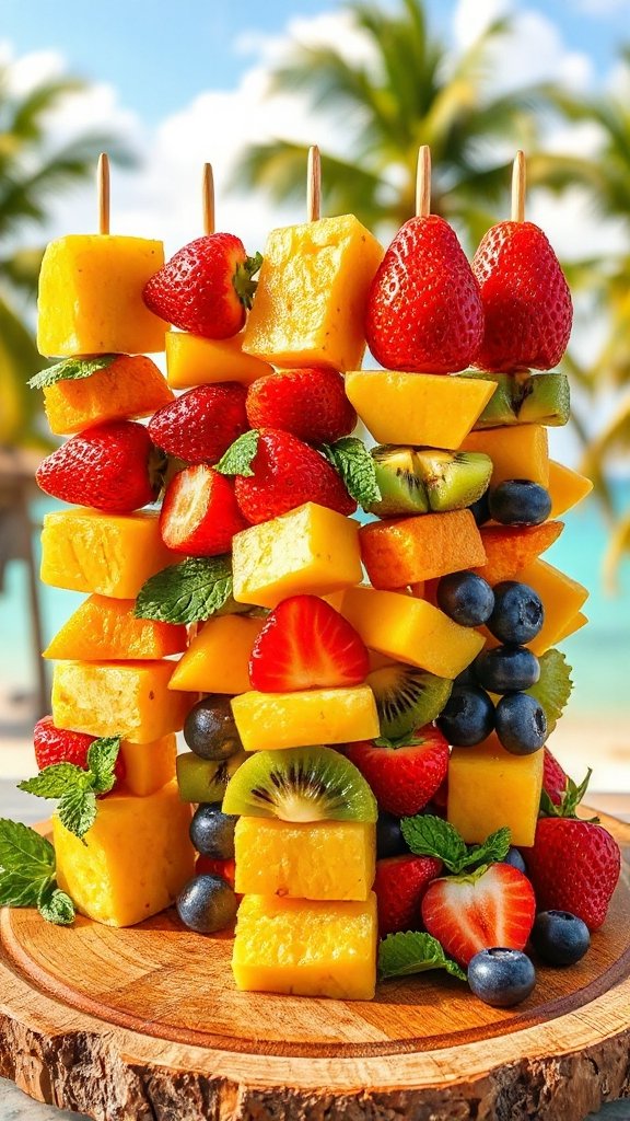 3. Serve: Arrange the assembled skewers on a platter and serve immediately, or chill in the refrigerator for about 20 minutes before serving.