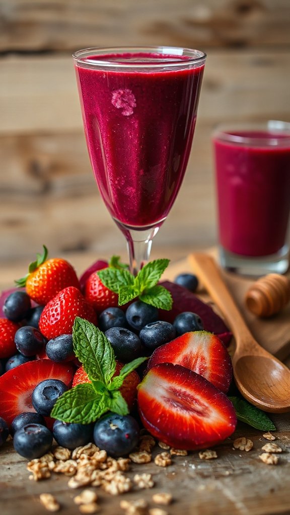 The Beetroot Berry Revitalizer is a vibrant and nutrient-packed smoothie that combines the earthy flavors of beetroot with the sweet and tart notes of mixed berries. This smoothie is a fantastic way to boost your energy levels and enhance your health, making it a perfect choice for breakfast or as a post-workout snack. Rich in antioxidants, vitamins, and minerals, it not only tastes delicious but also supports overall wellbeing.