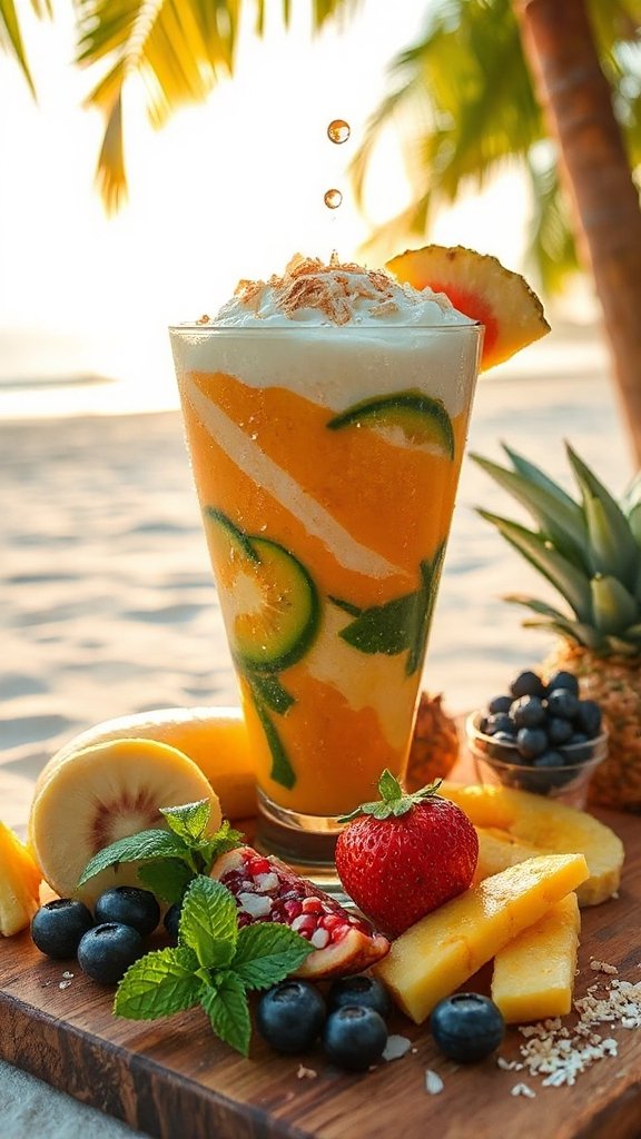 The Tropical Paradise Smoothie is a delightful and invigorating drink that transports your taste buds straight to a sunny beach with every sip. Bursting with tropical flavors from fresh fruit like mango, pineapple, and coconut, this smoothie is not only delicious but also nutrient-packed, making it a perfect choice for a quick breakfast or a revitalizing snack.