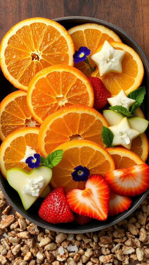 - Arrange the orange slices in a circular pattern to resemble wheels on a plate or bento box.