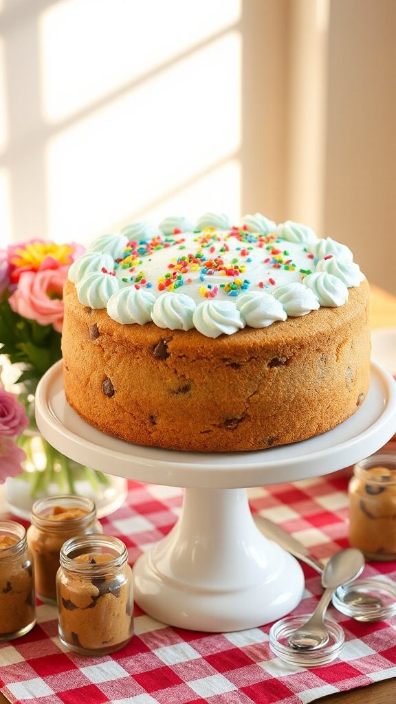 A classic chocolate chip cookie cake is the perfect dessert to celebrate the back-to-school season, combining the best of both worlds – a chewy cookie texture with the presentation of a cake. This delightful treat is great for sharing with friends and family after school, and can even serve as a fun birthday cake for cookie lovers.