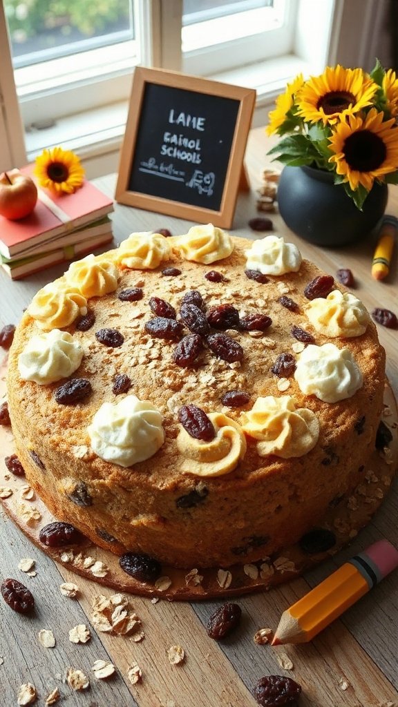 Oatmeal Raisin Cookie Cake is a scrumptious dessert that combines the hearty goodness of oatmeal with sweet, plump raisins, creating a delightfully chewy and satisfying treat. This cookie cake is a perfect choice for back-to-school gatherings, offering a wholesome flavor that appeals to both kids and adults alike!