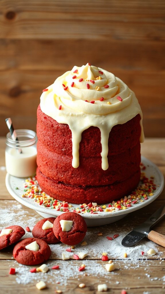 Red Velvet Cookie Cake is a vibrant and delicious dessert that captures the classic flavors of red velvet cake in a chewy cookie form. This eye-catching treat is perfect for back-to-school celebrations, combining the rich taste of cocoa with a hint of vanilla and a cream cheese frosting that ties it all together. It’s sure to impress kids and adults alike!