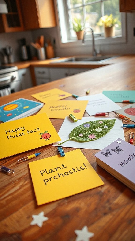 - Research and write down fun facts or quotes related to each season on the note cards, using colorful pens to brighten them up.