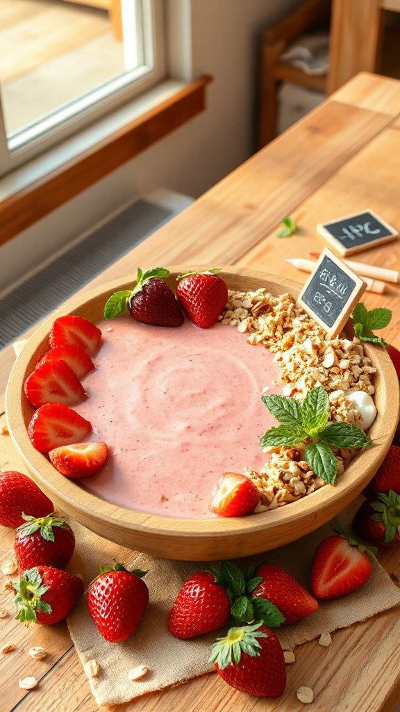 - Top with your choice of toppings, such as granola, sliced strawberries, nuts, or seeds.