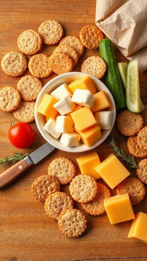 - Arrange the cheese on a plate or in snack bags alongside whole grain crackers.