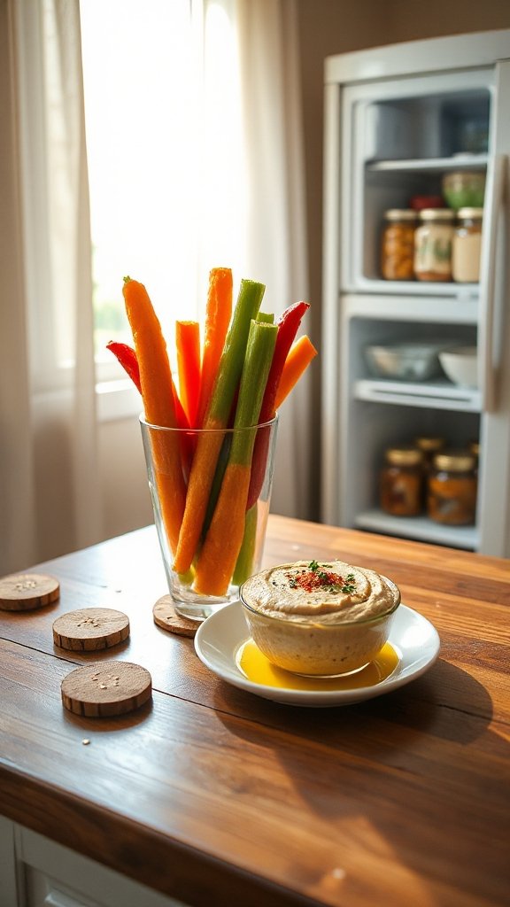 Veggie Sticks with Hummus are a vibrant and healthy snack option that makes a great grab-and-go choice for school. This combination of fresh vegetables and creamy hummus provides a satisfying crunch along with essential vitamins and minerals, making them perfect for fueling kids through their day. The versatility of this snack is appealing, as it can be customized with various vegetables and flavored hummus options.