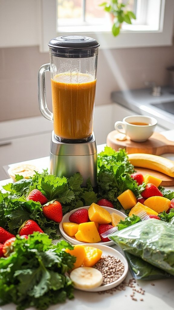 - Gather all the ingredients and divide them into individual portions for each smoothie pack.
