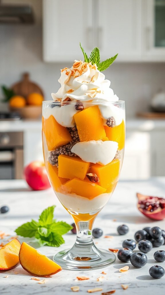 - Add a layer of diced mango on top of the yogurt.