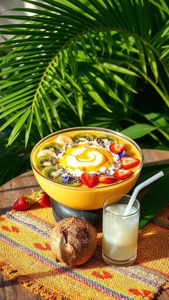 The Mango Coconut Cream smoothie bowl is a tropical delight that brings the sunny flavors of mango and coconut together in a rejuvenating and nutritious treat. Perfect for breakfast or as an afternoon energy boost, this creamy smoothie bowl is full of vitamins and minerals while being naturally sweet. Topped with colorful fruits and crunchy nuts, it’s sure to satisfy everyone’s taste buds and keep you energized for the day ahead.