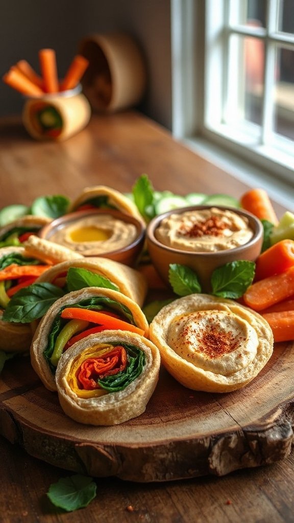 Veggie Pinwheels with Hummus make for a fun and colorful vegan snack ideal for school lunches or after-school munchies. These easy-to-make pinwheels are not only packed with a variety of fresh vegetables but are also rolled up in a tortilla spread with creamy hummus, creating a tasty and nutritious snack that kids will love.