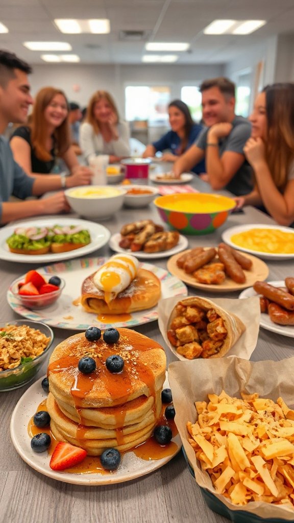 Breakfast for lunch is a delightful way to shake up the midday meal routine. It combines classic breakfast foods that are not only satisfying but also easy to prepare and pack. Think fluffy scrambled eggs, crispy bacon, and fluffy pancakes or waffles that can easily be enjoyed during lunch hours, making for a hearty and wholesome meal.