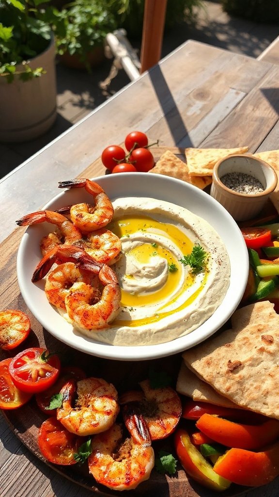 Grilled shrimp skewers paired with hummus make for an elegant and flavorful appetizer that is perfect for outdoor gatherings or as a sophisticated addition to any meal. The combination of smoky, grilled shrimp and the creamy, savory dip of hummus creates a delightful contrast that is sure to impress your guests.