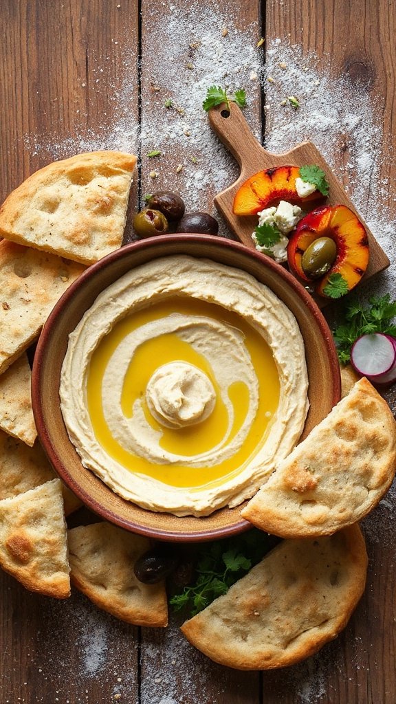 Fresh fruits make for a revitalizing and vibrant accompaniment to hummus. The natural sweetness and juicy texture of fruits contrast beautifully with the creamy, savory flavors of hummus, making them a delightful pairing for a healthy snack or appetizer. Popular options include crisp apples, ripe pears, succulent strawberries, and juicy orange slices, which all provide a burst of flavor that enhances your hummus experience.