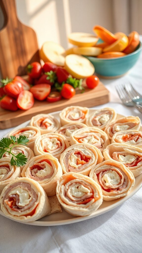 5. Slice the roll-ups into bite-sized pieces and serve immediately, or wrap them in foil for a tasty, portable lunch option.
