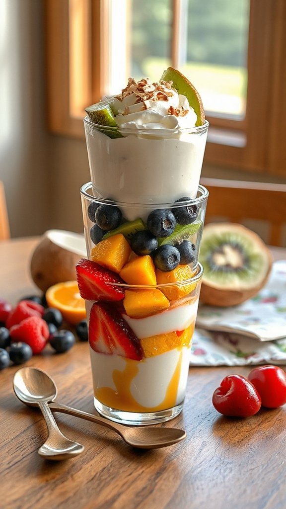 2. Add a layer of mixed fresh fruits on top of the yogurt.