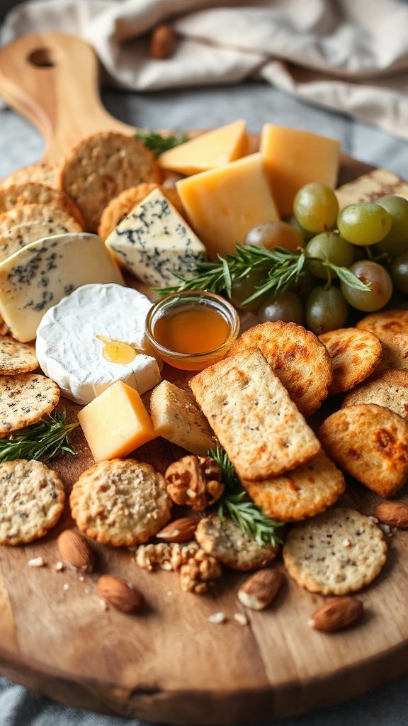 - Add a variety of crackers around the cheese, ensuring they are well spaced for easy access.