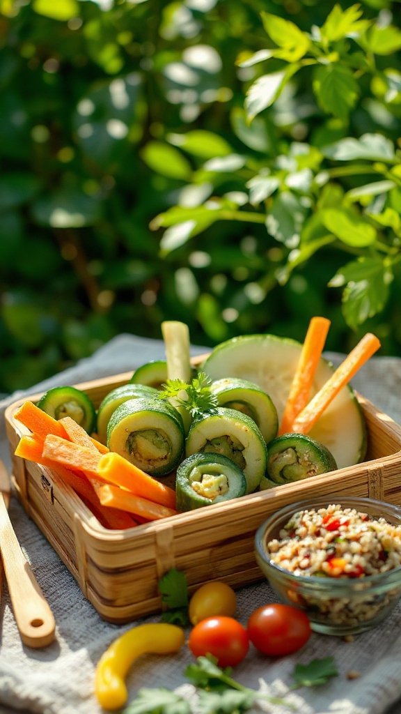 Cucumber and Avocado Rolls are a invigorating and healthy side dish that’s perfect for lunchboxes. These rolls combine the crispness of cucumber with the creamy texture of avocado, creating a delightful bite that’s both nutritious and satisfying. They can be customized with a variety of fillings to suit your taste preferences, making them a fun and versatile option for any meal.