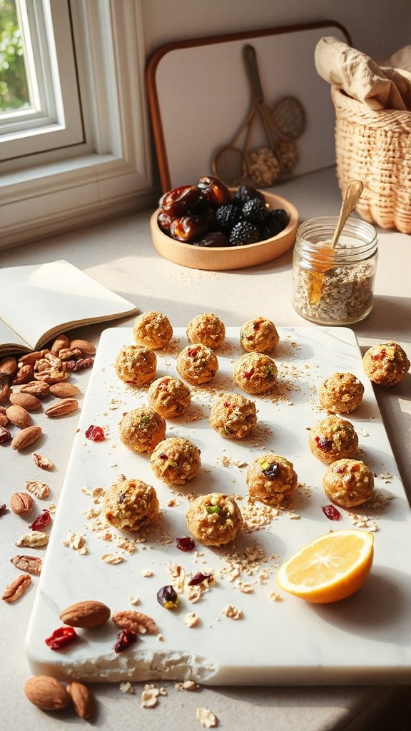 - Place the energy bites on a baking sheet or plate and refrigerate for at least 30 minutes to firm up.
