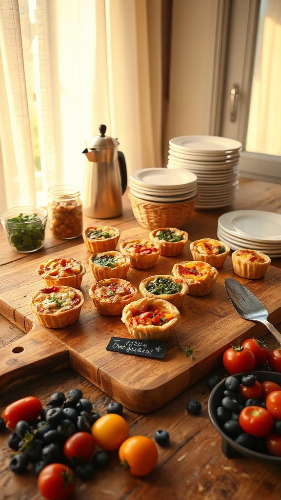 - Bake for 20-25 minutes, or until the mini quiches are puffed up and golden brown. Allow them to cool for a few minutes before removing from the tin.